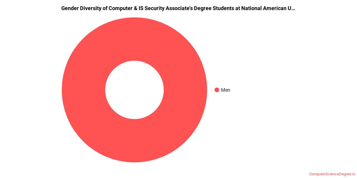 The computer and IS security program at National American University - Ellsworth AFB Extension awarded 2 bachelor's degrees in 2017-2018. About 100% of these degrees went to men with the other 0% going to women.