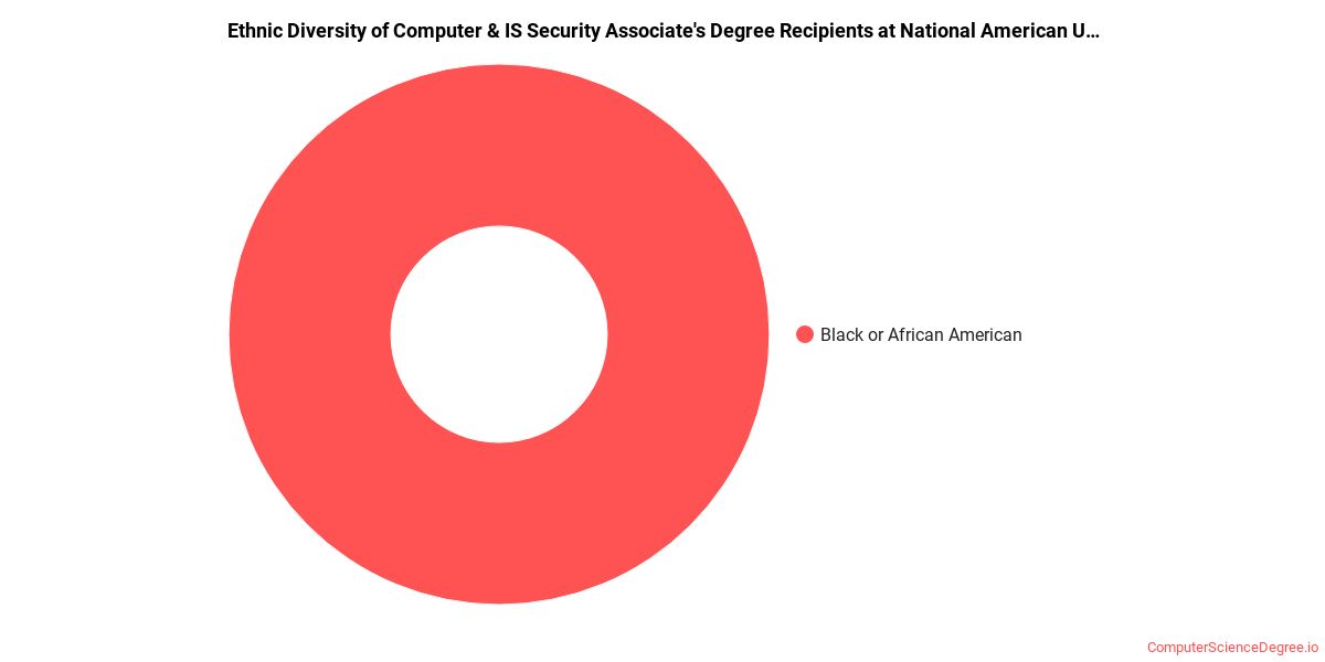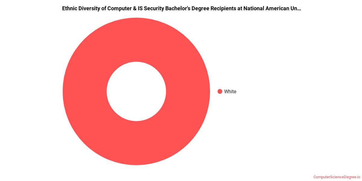 The majority of bachelor 's degree recipients in this major at National American University - Ellsworth AFB Extension are white. In the most recent graduating class for which data is available, 100% of students fell into this category.
