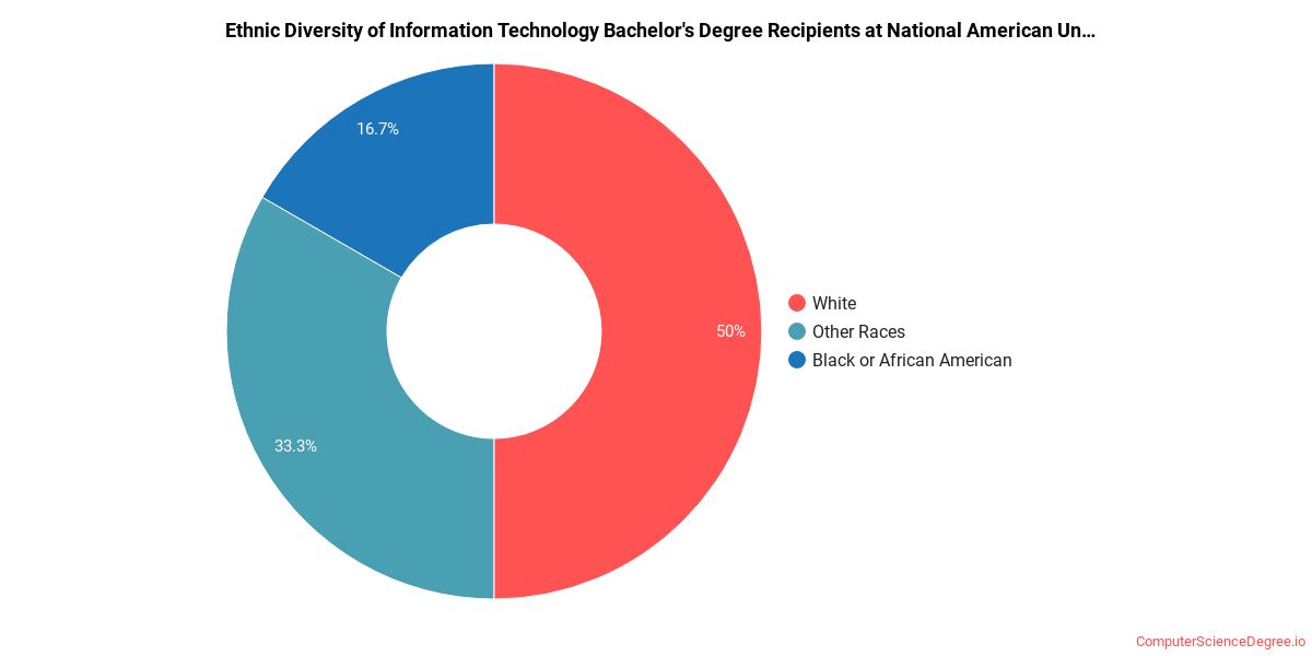 Of the 6 students who graduated with a Bachelor’s in IT from National American University - Rapid City in 2018, 67% were men and 33% were women.