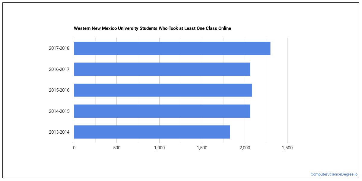 The average growth rate over the last four years of online students at Western New Mexico University was 8.2%. This is the #1,040 largest growth rate of all schools that are only partially online. This refers to all students at Western New Mexico University regardless of major.
