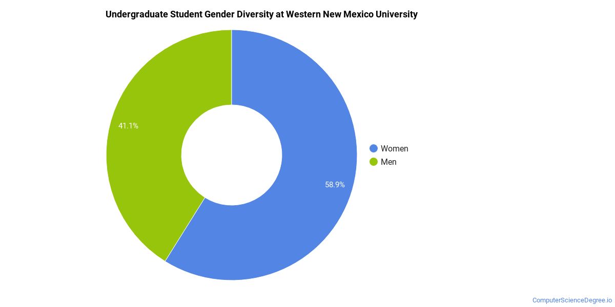 Of the 1,102 full-time undergraduates at Western New Mexico University, 41% are male and 59% are female.